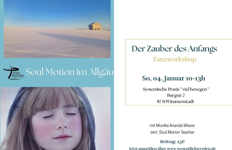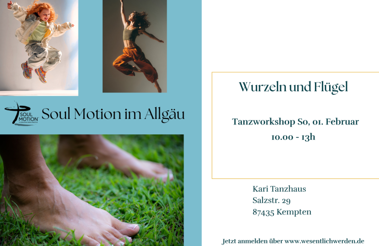 In Soul Motion lenken wir die Aufmerksamkeit auf das, was in diesem Moment da ist: die Bewegungen oder die Starre im eigenen Körper, den Atem, den Raum um uns herum, und auch das, wer und was uns begegnet.
